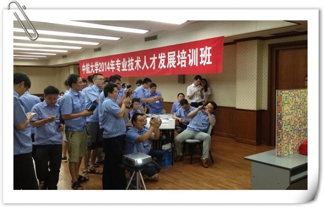 2014年7月14日、21日,北京密云中航大学,思勤咨询分别为TED二期、三期的学员们组织了开班培训。形式新颖的魔方培训,让来自中航工业各公司技术骨干,在三个多小时里,从陌生到熟悉,感情迅速升温,最后用魔方拼成的二维码,更是带给了大家不同的体验感,看到伙伴们共同努力后的成果更是让TED的小伙伴们为之震撼。短暂的团队建设不仅让小伙伴们相互熟悉,也为接下来的培训开展奠定了基础,祝福他们在培训中不断成长,为中国航空事业的发展贡献力量。