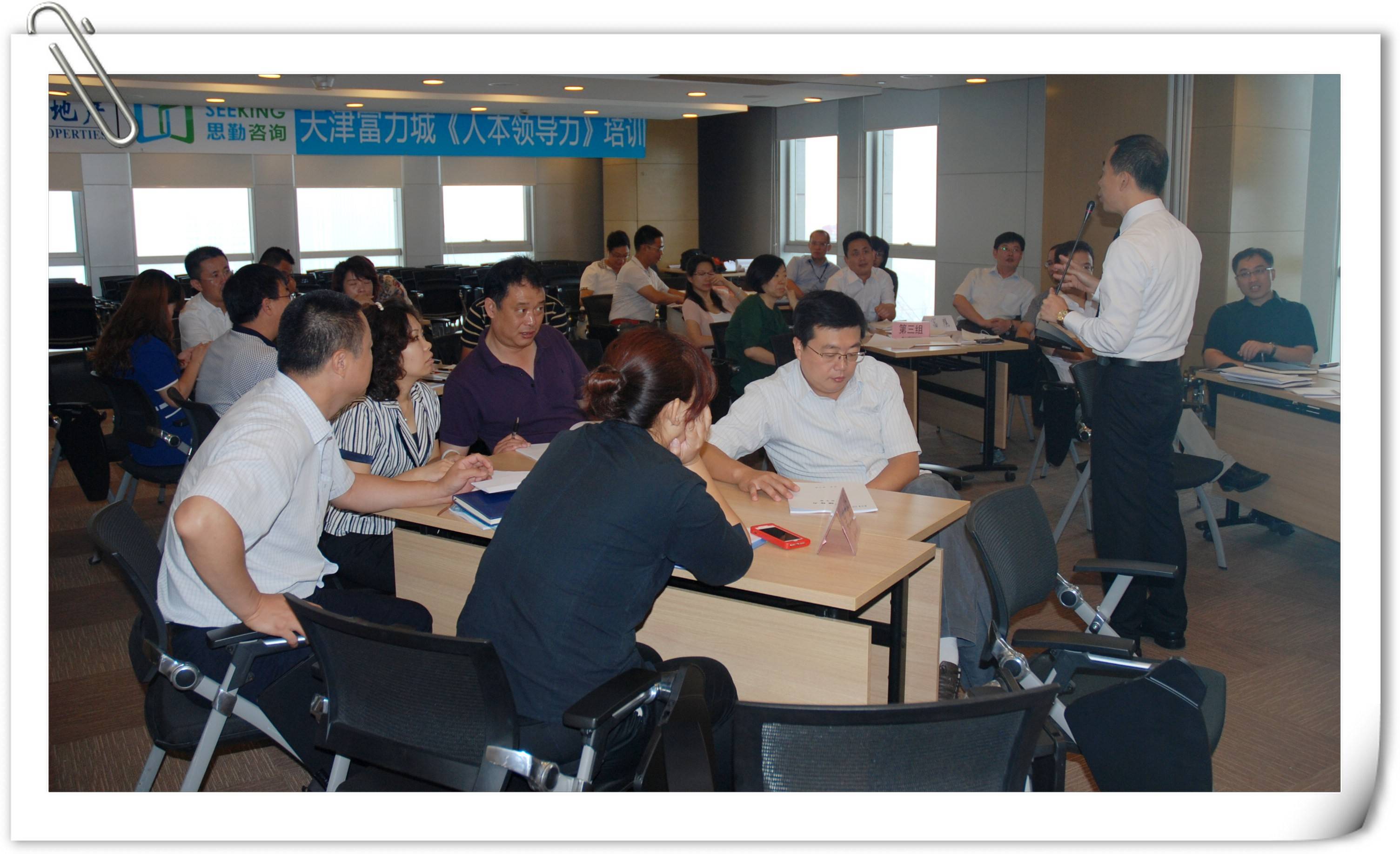 2014年7月25日至26日,在天津富力新楼盘开售和新项目开工之际,思勤咨询为天津富力的中高层管理人员量身打造了一堂«人本领导力»课程。尽管天气很热、工作很忙,但领导们还是全情投入到课程的培训中。