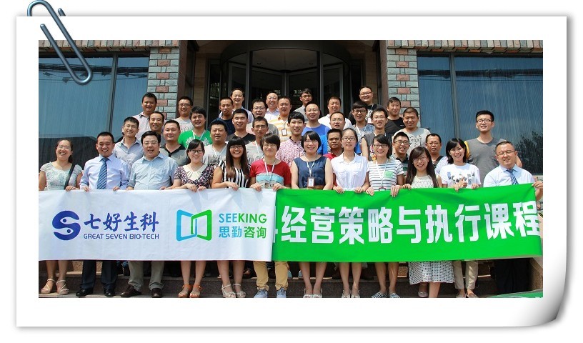 2014年8月2日下午,由北京思勤管理咨询有限公司为青岛七好生物科技有限公司策划的《经营策略与执行》沙盘模拟经营课程圆满落下了帷幕。七好生科72名中高层领导和骨干一同经历了这难忘的“屋中方三日,商界已六年”的运营体验。根据课程要求,72名学员组建了十二家企业,组员分别担任“总经理”、“副总经理”、“财务总监”、“市场总监”、“人事总监”和“生产总监”的角色。充分了解其他部门的工作流程和工作内容,换位思考,加强部门间理解和沟通。在丁硼老师详细讲授了运营规则后,各家企业开始了运营。