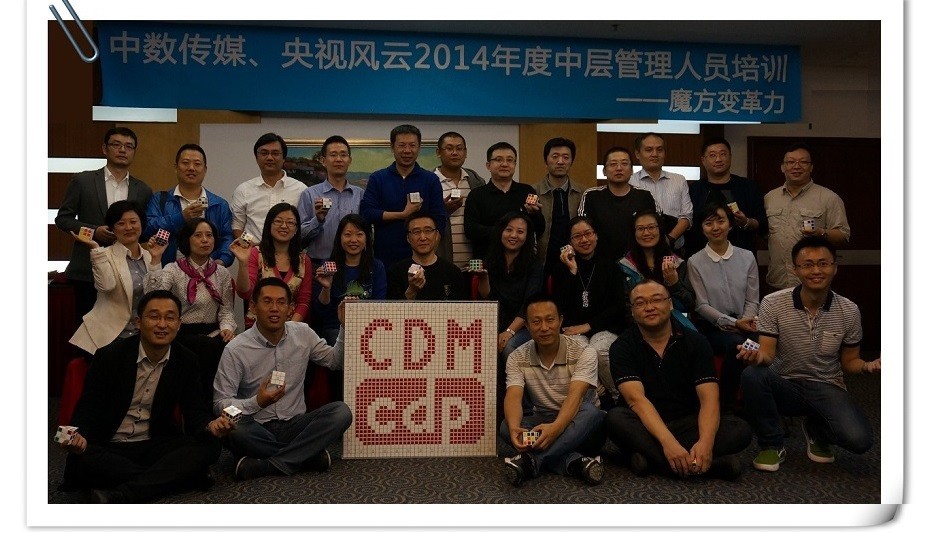 2014年10月15日至16日,思勤咨询为中数传媒、央视风云的中层管理人员策划了一场精彩而深刻的《魔方变革力》培训课程。为了攻破这个拥有四千亿亿种变化的难题,学员们把茶歇、吃饭、睡觉的时间都用来思考和练习,并且不断和同伴们交流从魔方学习中体会到的管理思维。